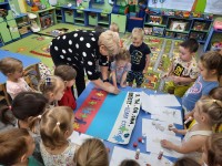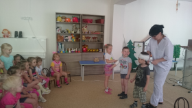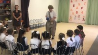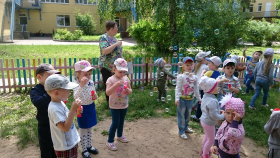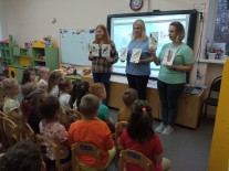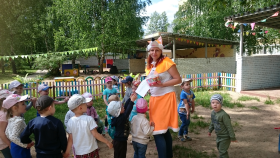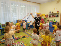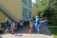 А после возвращения в детский сад и еще находясь под незабываемыми впечатлениями от увиденного в школе, ребят ждал новый сюрприз: инструктор по физической культуре, Гурьева Лариса Евгеньевна, совместно с музыкальным руководителем Зубановой Ниной Аркадьевной и Бондаревой Ольгой Николаевной подготовили для воспитанников развлечение, посвященное "Дню знаний". Хотелось бы отдельно отметить актерское мастерство наших педагогов: Мартьяновой Любови Юрьевны, воспитателя старшей группы №10 "Божья коровка" и воспитателя средней группы №9 "Цыплята" Лезихиной Елены Алексеевны.