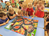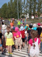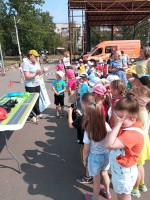 В рамках летней акции "Внимание дети" 6 июня группа №9 "Радуга" и группа №7 "Облачко" посетили специализированную площадку по ПДД (МОУ СОШ 4). Ребята повторяли правила дорожного движения, правила безопасности на улицах и дорогах, отгадывали загадки, играли в игры: "Разрешается – запрещается", "Ловкий пешеход" и др. Самой интересной и запоминающейся для детей была игра "На улицах города" под веселую музыку дети разъезжали по дорогам, а бдительный патруль ДПС регулировал движение "автомобилей" и пешеходов.