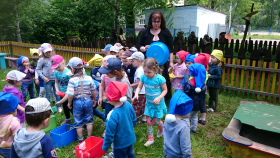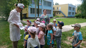 19 мая 2016 года в нашем учреждении прошло торжественное посвящение воспитанников старших групп №6 "Фантазеры" и №8 "Цыплята" в "Юных защитников природы". Благодаря талантливой игре наших педагогов: Петровой Инны Юрьевны (Планета Земля) и Терентьевой Ольги Александровны (Лесовичок), дети смогли ощутить меру ответственности за охрану природы, возложенную на них, а так же блеснуть соими знаниями в области познавательного развития. В заключение мероприятия при помощи наших сотрудников: Волковой Ольги Григорьевны (учитель-логопед) и Бисеровой Марины Владимировны (музыкальный руководитель), Захаровой Екатерины Михайловны (старший воспитатель) и нашего руководителя – Сердюк Людмилы Александровны были посажены на территории детского сада саженцы растений из дендрологического сада им. С.Ф. Харитонова. А дети за активную позицию были награждены медалями "Юному защитнику природы".