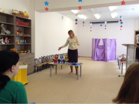 22 октября в МДОУ «Детский сад «Звёздочка» прошло первое заседание этого учебного года методического объединения педагогов, работающих с детьми с ОВЗ. На этот раз заседание было посвящено проблеме особенностей развития и коррекции детей с синдромом Дауна в дошкольных организациях. Так Волкова О. Г., учитель-логопед МДОУ «Детский сад «Звёздочка» кратко рассказала коллегам о данном заболевании, особенностях развития детей дошкольного возраста и путях коррекции в условиях детского сада. Далее педагогам было предложено видео занятия по развитию речи «В гостях у медвежонка» с ребенком 6 лет с синдромом Дауна. После просмотра коллеги обсудили вопрос организации коррекционного процесса с данной категорией детей и получили рекомендации по вопросу организации образовательного процесса для данной категории воспитанников.