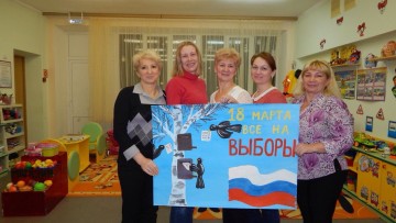 В феврале 2018 года творческая группа педагогов нашего детскогосада подготовила плакат "Выбираем вместе!" в предверии важного для всех россиян дня – выборов президента нашей страны. Мы голосуем, Мы решаем, Мы выбираем ВМЕСТЕ!!!